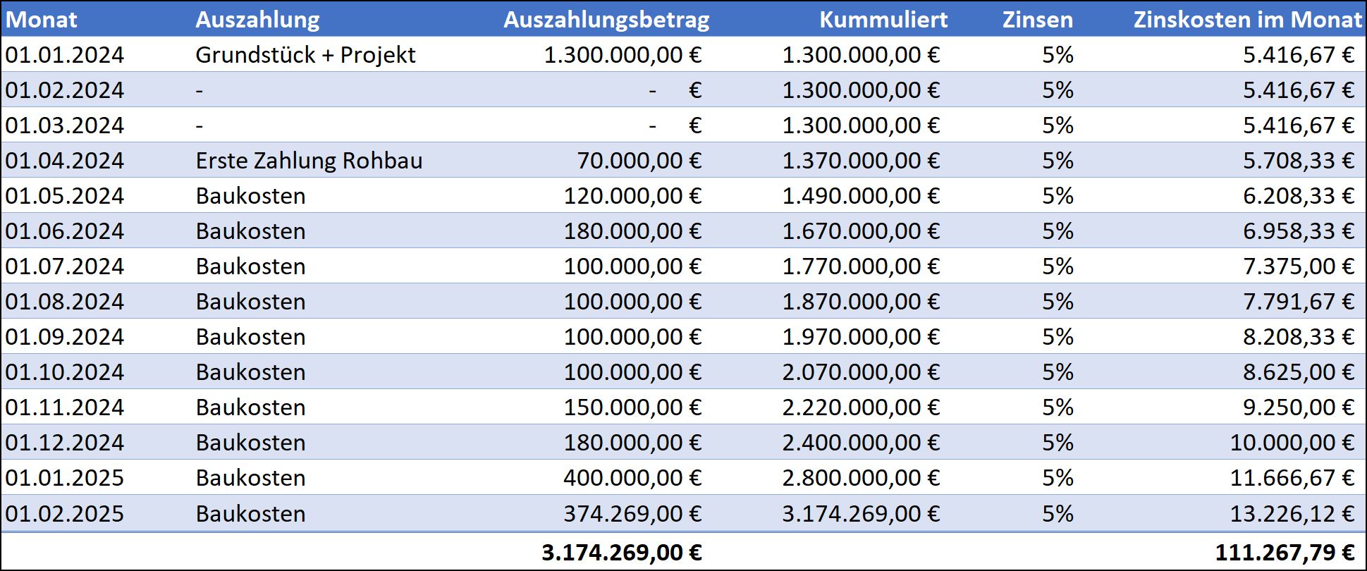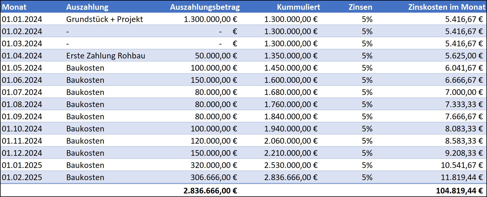 Gesamtkosten inklusive Zinsen: 3.285.536,79 €